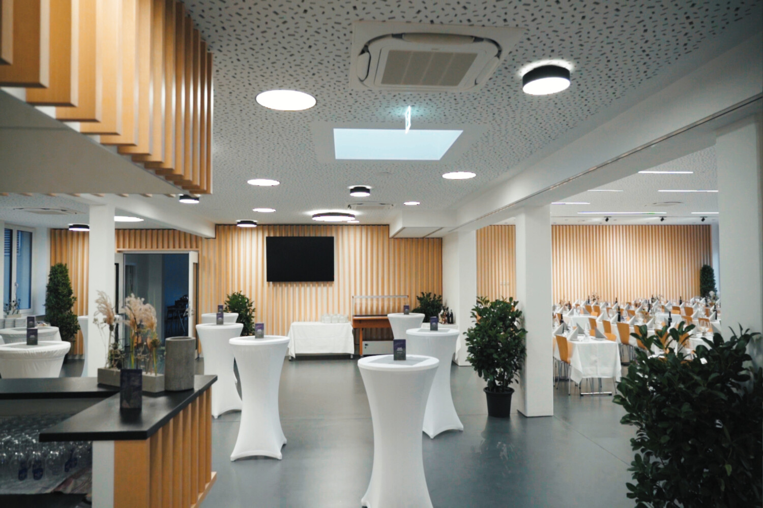 Die Gleichweit Wand- und Deckenverkleidung machen es möglich, technische Installationen einfach zu verbauen und zu warten. Gleichzeitig verbessern spezielle Paneele die Raumakustik.
